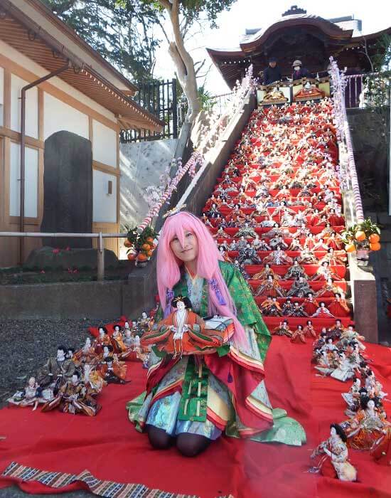 愛宕神社で大雛壇 見上げたら お雛様が笑ってた